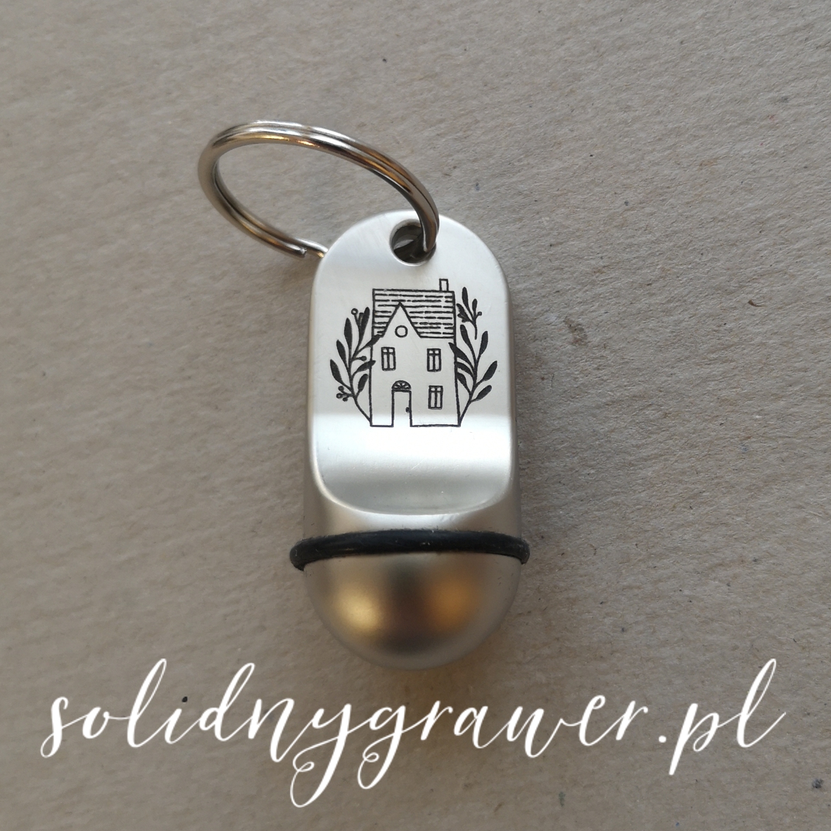 Dwustronnie grawerowany brelok 50x22 mm z kulką stalowy z grawerem Szczecin